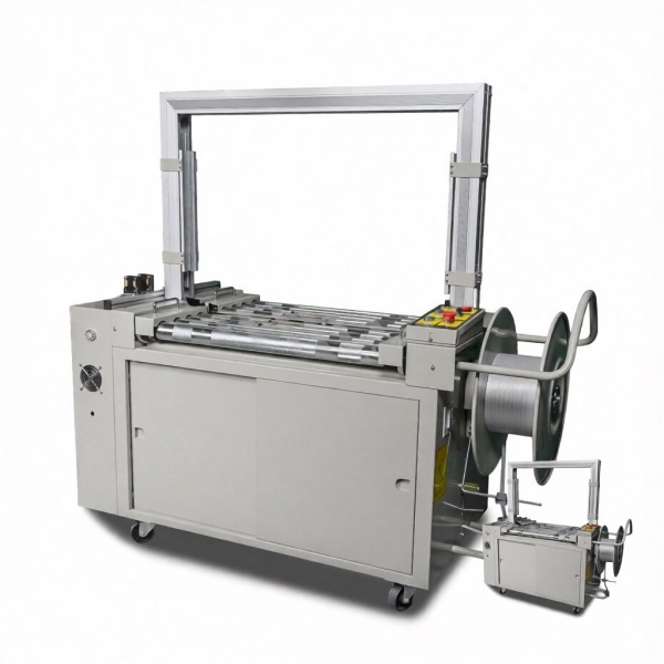 Это усиленная стреппинг-машина, идеально адаптированная для интеграции в автоматические линии на предприятиях пищевой, промышленной и других отраслей. Она выполняет полный цикл упаковки: автоматическую обмотку, сварку и обрезку полипропиленовой (ПП) или полиэтиленовой (ПЭ) ленты. Ширина используемой ленты может варьироваться от 9 до 15 мм благодаря специальной системе направляющих, что обеспечивает универсальность оборудования. Базовая комплектация предполагает использование ленты 10-13 мм.